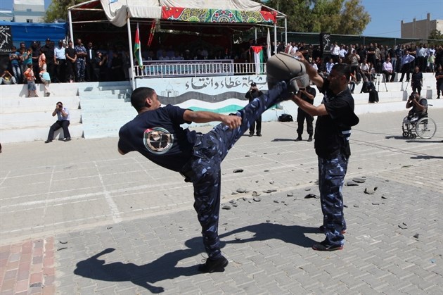 كما تخلل حفل التخريج عروضاً عدة قدمها أفراد قوات التدخل وحفظ النظام في الشرطة إلى جانب عروض في الدفاع عن النفس نفذها أبطال الاتحاد الرياضي في الشرطة الفلسطينية .