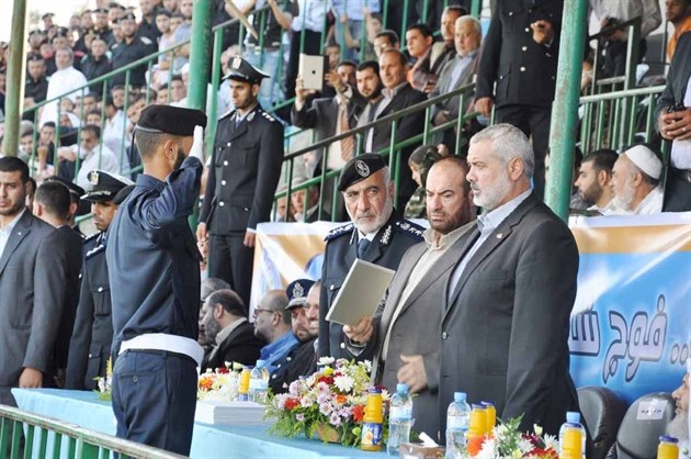 وخلال الحفل، قال وزير الداخلية فتحي حماد انه لا صلح مع العلمانية ولن يسود إلا حكم الإسلام , مشيرا إلى أن هؤلاء الشرطة الفلسطينية ستلاحق "العملاء "