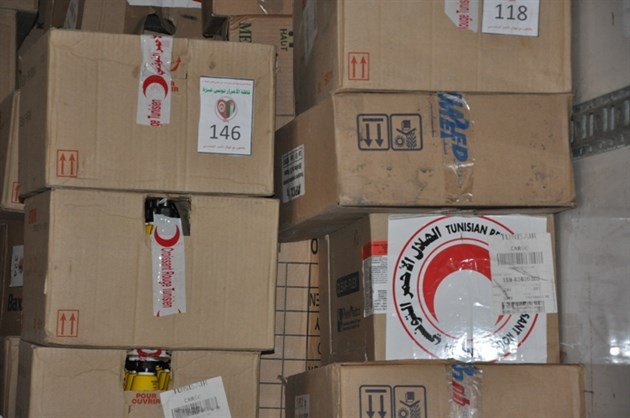 Partenaires pour la Paix" qui cible briser le siège imposé sur la bande de Gaza depuis cinq ans .Les aides humanitaires importés par la convoie sont 14 voitures pour les handicapés , des médicaments , et fluoroscopique et les coutumes sont encore à Alexandrie .
