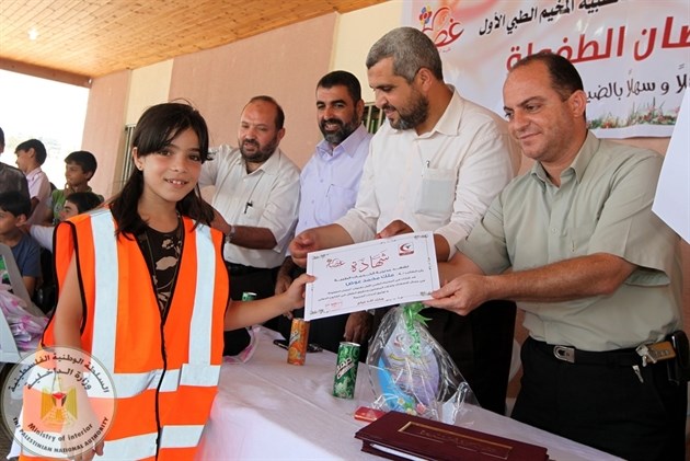 وتقدم بالشكر والامتنان لكل من ساهم برعاية المخيم وخاصة وزير الداخلية الأستاذ فتحي حماد وكل من ساهم في إنجاح المخيم من الهيئة الدولية للصليب الأحمر وشركة جوال.