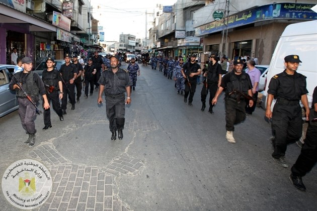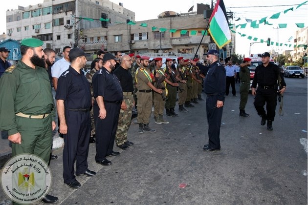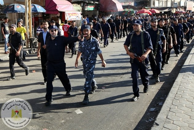 نظمت وزارة الداخلية والأمن الوطني عصر السبت مسيراً عسكرياً مشتركاً لأجهزتها الأمنية في قطاع غزة جاب الشوارع والمفترقات الرئيسية لمحافظة غزة.