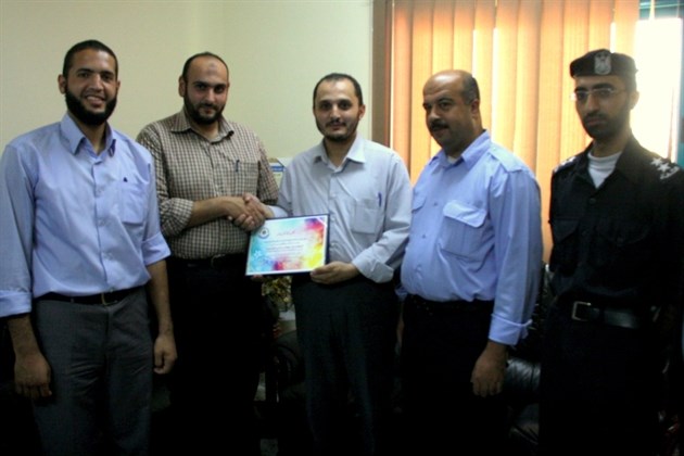 L'administration général de police de l'antidrogue auprès la police palestinienne a honoré jeudi les employés originaux au sein de l'administration générale de media en raison de leurs efforts et leurs rôle médiatique. L'administrateur général de l'antidrogue, Ahmed Alquidra , et le directeur de relations publiques le capitaine , Sa'adi Alckeikh Khalil , ont participé lors de cérémonie de considération .