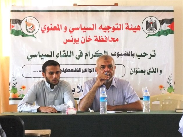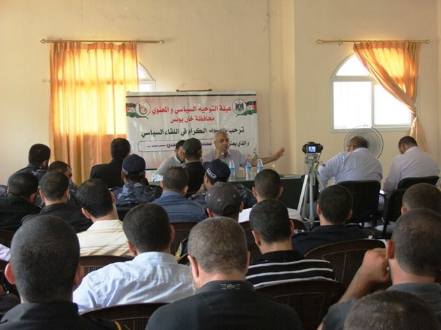 نظمت هيئة التوجيه السياسي والمعنوي بمحافظة خان يونس جنوب قطاع غزة لقاءً سياسيًا للأجهزة الأمنية في المحافظة حول آخر المستجدات على الساحة الفلسطينية.