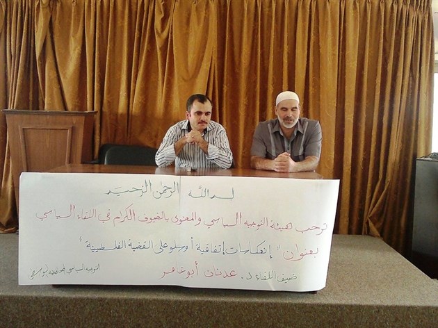 وتحدث الدكتور أبو عامر عن الاتفاقية وانعكاساتها الخطيرة على القضية الفلسطينية وعن الصعاب المستقبلية لهذه الاتفاقية المجحفة.