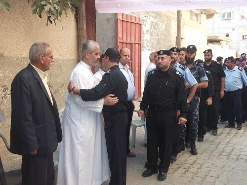 واسقبل وفد الشرطة الدكتور فوزي برهوم الناطق باسم حركة حماس بالإضافة إلى وجهاء عائلة برهوم وصبح.