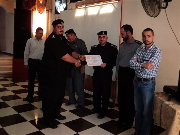وفي ختام الدورة تم توزيع الشهادات على المنتسبين حيث شارك في التكريم كلا من العقيد يحى الشوبكي مفتش عام المديرية العامة للتدريب والمقدم سامي صالح محافظ شرطة رفح والملازم أول شريف عاشور منسق الدورات الخارجية في المديرية العامة للتدريب ووفدا من الصليب الأحمر الدولي.