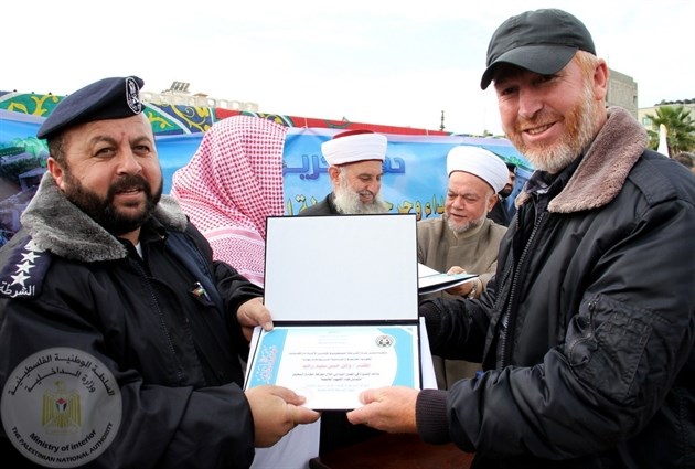وحضر حفل التكريم الذي عقد على أطلال مقر قيادة الشرطة المدمر بمدينة عرفات للشرطة بغزة النائب في المجلس التشريعي الفلسطيني أ. مشير المصري ووكيل وزارة الداخلية أ. كامل أبو ماضي ومستشار رئيس الوزراء ووزير الداخلية لشئون العشائر والإصلاح الحاج أبو ناصر الكجك والمراقب العام للوزارة المستشار سامي نوفل ومدير مدير عام الشرطة العميد تيسير البطش