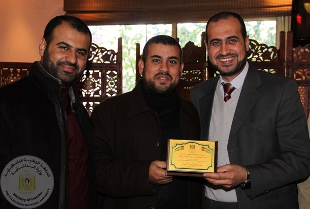 وحضر حفل التكريم في منزل وزير الداخلية كل من مدير عام العلاقات العامة والإعلام بالوزارة أ. إبراهيم صلاح ومدراء الدوائر والناطق باسم الوزارة الرائد إسلام شهوان.