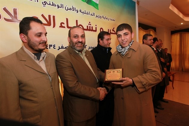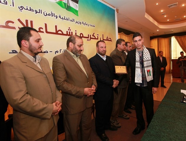 وقال وزير الشباب والثقافة "نرى الحكومة ممثلة بوزارة الداخلية تقوم بدورها الطليعي والبناء ليس على مستوى تأمين الجبهة الداخلية وحمايتها من الاختراق وتوفير الأجواء التي تؤمن حياة شعبنا وإنما تتقدم خطوة إلى الأمام من أجل أن ترعى شريحة مهمة ورئيسية ممثلاً في الاعلام الجديد الذي حظي باهتمام رائد خلال حرب حجارة السجيل".