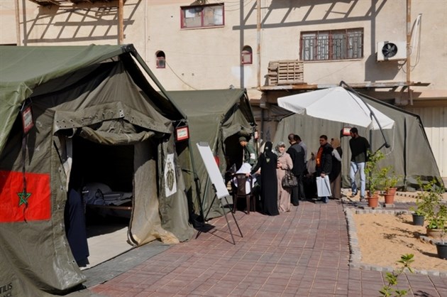 Moroccan field hospital, which is the first hospital on the land of Gaza after the recent Israeli aggression, to treat and medicate the wounded Palestinians in the Gaza Strip.