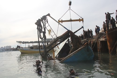 وذكرت الشرطة البحرية أن "طواقم العائمة والغطس" التابعة لها تمكنت من الغوص داخل حوض ميناء غزة البحري وانتشال القارب بواسطة رافعات خاصة.