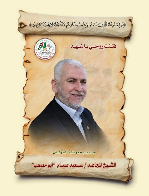 تمر علينا اليوم الخامس عشر من كانون الثاني (يناير) من العام 2012م الذكرى السنوية الثالثة على استشهاد وزير الداخلية القائد المؤسس سعيد صيام "أبو مصعب" والذي ارتقى نهاية حرب الفرقان.