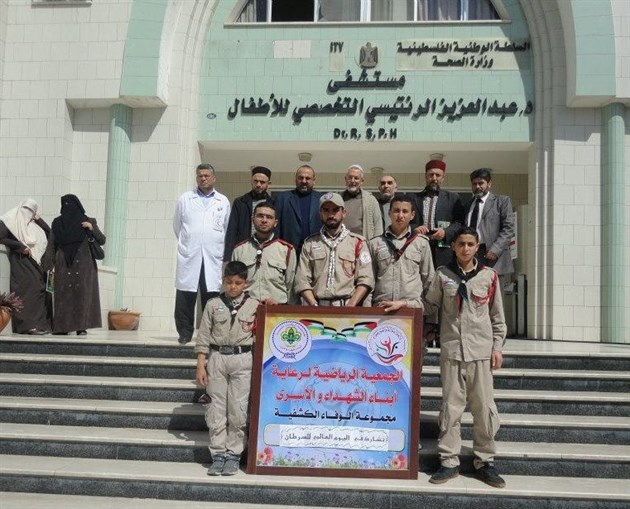 وقد ضم الوفد أ. نبيل حمتو رئيس الجمعية والأستاذ حسن نشوان أمين سر الجمعية مديرة الجمعية والقائد الكشفي جهاد الخليلي وأعضاء مجموعة الوفاء الكشفية المكونة من أبناء الشهداء والأسري .