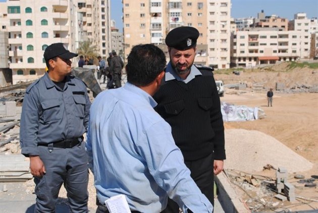 تفقد العقيد محمود صلاح مدير عام المديرية العامة للتدريب في وزارة الداخلية والأمن الوطني عملية البناء في المديرية في موقع أنصار غرب غزة.