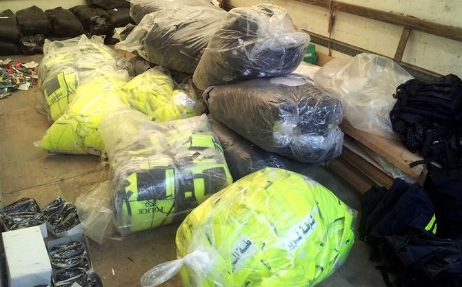 وأوضح مدير دائرة المستودعات بأن هذه المعدات تشمل دروع وجعب ونظارات شمسية وحواجز طرق وخيم وغاز أعصاب معدات دفاع مدني وتجهيزات لجهاز الأمن والحماية وكما ووفرت أحذية خاصة للشرطة النسائية .