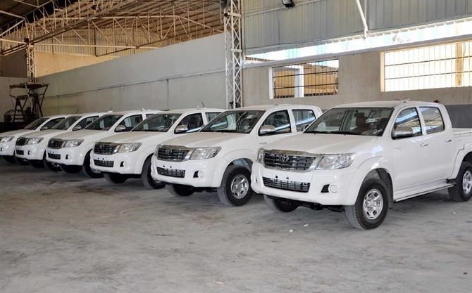 سلمت الإدارة العامة للإمداد والتجهيز بوزارة الداخلية و الأمن الوطني جهاز الشرطة الفلسطينية اليوم الأحد (10) مركبات جديدة من نوع تويتا جيب هايلوكس.