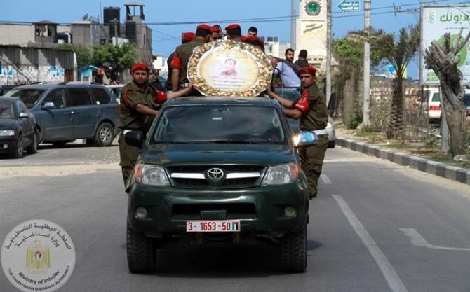 وشارك في الجنازة العسكرية التي انطلقت من مهبط الطيران بمجمع أنصار الأمني غرب غزة حشد من مختلف ضباط وعناصر الأجهزة الأمنية والشرطية بمشاركة من قادة وأركان وزارة الداخلية.
