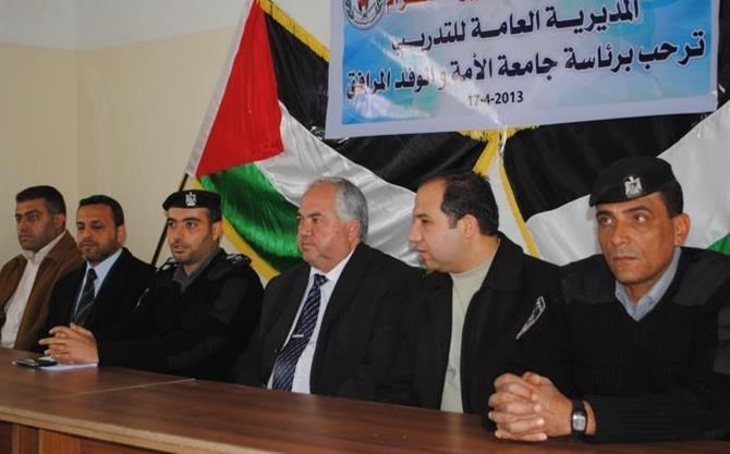 وأكد على حرص المديرية العامة للتدريب على التعاون الدائم والمشترك مبينا أن الداخلية عملت ومنذ اللحظة الأولي للانفتاح على مؤسسات المجتمع المدني وكافة قطاعات الشعب الفلسطيني فكان التعاون المشترك بين جامعة الأمة ووزارة الداخلية ممثلة بالمديرية العامة للتدريب لتأهيل وتدريب طلاب قسم العلوم الأمنية والشرطية.
