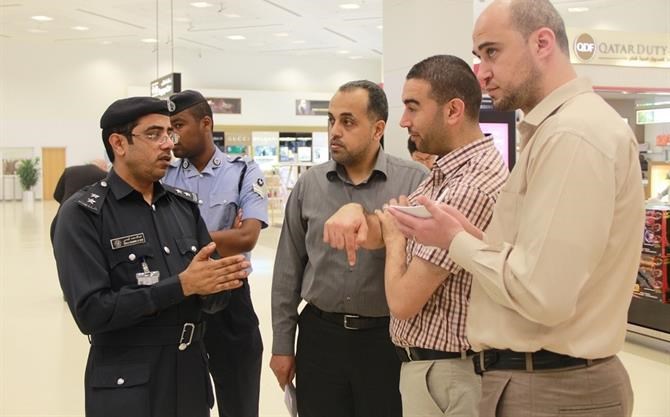 وتجول وفد قطاع نظم المعلومات بوزارة الداخلية الفلسطينية بين أروقة وقاعات مطار الدوحة الدولي وتعرفوا على عمل عدة أجهزة شملت جهاز البصمة الالكترونية وجهاز كشف التزوير .