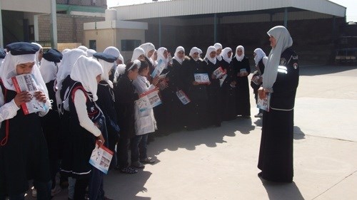 غزة / الداخلية / إعلام الشرطة: شاركت الشرطة النسائية وشرطة هندسة المتفجرات في يوم أمني لطالبات المرحلة الإعدادية في مخيمات جيل العودة بمدينة غزة. وتحدثت النقيب فايزة عبد الدايم مسئول دائرة التوجيه والإرشاد في الشرطة النسائية عن دور الشرطة النسائية، وأهم الأعمال التي تقع على كاهلها. وذكرت الأسباب التي تؤدي إلى انحراف الفتاة سلوكياً وأخلاقياً وأهمها قلة الوازع الديني ورفقاء السوء وغياب المتابعة الأسرية . وفي نهاية حديثها سردت بعض القضايا التي ترد لدى الشرطة النسائية بهذا الخصوص. بدوره تحدث الرائد عبد الرحيم عباس مدير التدريب في هندسة المتفجرات عن أهمية التعرف على المواد المتفجرة كوننا شعب محاصر ويتعرض للحروب والاغتيالات المتكررة بحق قادتنا ومجاهدينا. وبيّن عباس أن الخطأ الأول هو الخطأ الأخير في التعامل مع المواد المتفجرة لذلك يجب التعامل بحذر مع هذه المواد التي تختلف حسب نوعيتها فمنها الصلبة والسائلة والغازية والعجينية . وأضاف عباس : "عليكم التعرف عليها لأن كثير من الأطفال استشهدوا بسبب عبثهم في مخلفات الاحتلال".