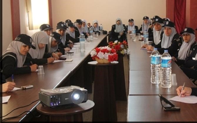 غزة / الداخلية / إعلام الشرطة: عقدت الإدارة العامة للتدريب في الشرطة الفلسطينية ورشة عمل للشرطة النسائية بعنوان الحس الأمني وذلك في مؤسسة بيت الحكمة بمدينة غزة. وبلغ عدد عناصر الشرطة النسائية المشاركات في الورشة 30 عنصر ، وقد حضر افتتاح ورشة العمل النقيب هاني عليان مسئول قسم التدريب التخصصي في إدارة التدريب . وأوضح عليان أن هذه الورشة هي ضمن الخطة التي وضعتها الإدارة العامة للتدريب للارتقاء بالكادر الشرطي مهنياً ، وتنمية المهارات العلمية والقدرات الإدارية والتخصصية في المجالات الشرطية. وتهدف ورشة العمل إلى علاج المشاكل التي تعيق العمل الشرطي ، واستكمالاً للدورات والمحاضرات التي تلقتها الشرطة النسائية . بدوره تحدث المحاضر عن أهمية الحس الأمني وخصائصه، كما ذكر النماذج من السيرة وحياة الصحابة مؤكداً أهمية الحس الأمني لدى رجل الأمن .