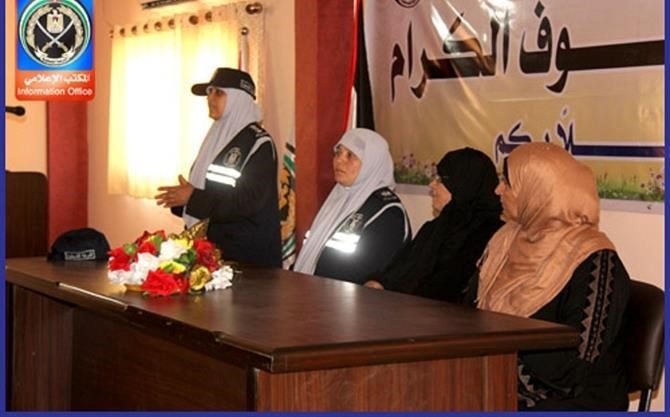 غزة / الداخلية / إعلام الشرطة استقبلت الشرطة النسائية وفداً سعودياً في مدينة عرفات للشرطة وسط مدينة غزة وكان في استقبال الوفد الرائد مريم الناعوق نائب مدير الشرطة النسائية ،وعدداً من ضباط وأفراد الشرطة النسائية . ورحبّت الرائد الناعوق بالوفد الزائر قائلةً" نشكر حضوركم هنا على أرض غزة التي ضحت وقدمت الشهداء، ونقول لكم أن غزة تشتاق لكم، ونحن سعداء بتواجدكم بيننا". وأضافت" أننا استحدثنا تجربة الشرطة النسائية الإسلامية ليحتذى بها في العالم أجمع." وأبدت فاطمة التميمي ناشطة في العمل الخيري سعادتها بهذا النموذج الإسلامي الراقي وتمنت أن يكون لديهم في المملكة جهاز للشرطة النسائية. وقالت التميمي " إن الصورة لدى الشرطة النسائية في قطاع غزة مختلفة وهي صورة نموذجية للعمل الشرطي النسائي". من جانبها قالت الدكتورة خديجة بادحدح رئيسة لجنة فلسطين في الندوة العالمية " لن يهزم شعب أنتم نساؤه ، نحن نشعر بالعزة إذ نكتسب من صمودكم صموداً وعزة ، أنتم الأحرار ونحن المحاصرون لأنكم فعلتم مالم يفعله غيركم". وفي نهاية اللقاء تم عرض "فيلم الشرطة النسائية حكاية صمود" من إنتاج المكتب الإعلامي للشرطة.