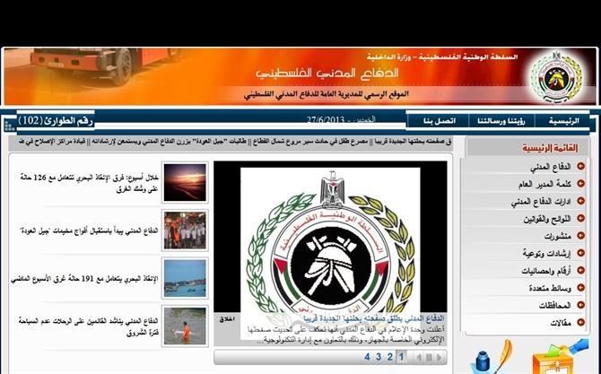غزة / الداخلية / محمد الميدنة: تعكف وحدة الإعلام في المديرية العامة للدفاع المدني بوزارة الداخلية والأمن الوطني على تحديث صفحتها الإلكترونية الخاصة بالجهاز، وذلك بالتعاون مع إدارة التكنولوجيا والحاسوب الحكومي. ويحتوي الموقع على زوايا متنوعة ومتعددة تهدف إلى إظهار نشاطات وأخبار الجهاز والفعالات المختلفة التي يقوم بها، وتعريف المواطن بعلوم ومهارات الدفاع المدني وإرشاداته. كما يشمل على زاوية خاصة بالمدير العام العميد يوسف الزهار (السيرة الذاتية، الأخبار والصور، صفحته على الفيسبوك). كما يضم الموقع زوايا خاصة بالصور والفيديو وأخرى خاصة بأهم أخبار الدفاع المدني العربي والدولي، إضافة إلى زوايا أخرى متنوعة.