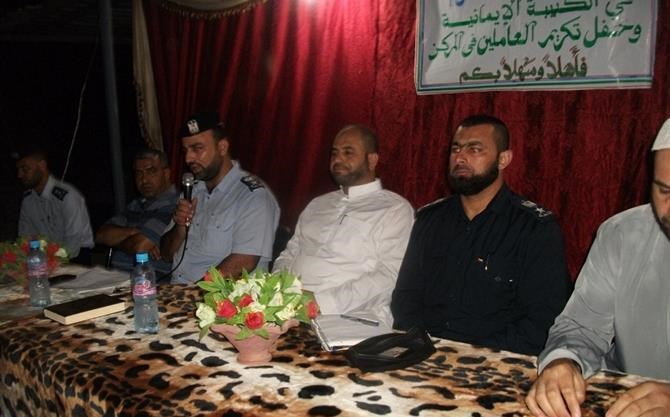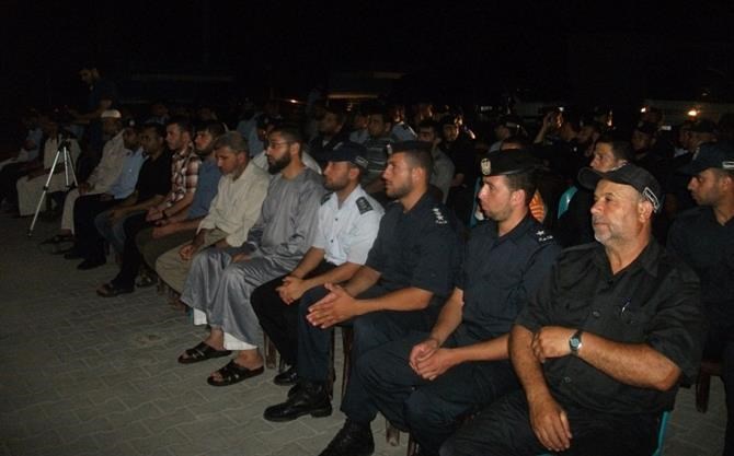 شمال غزة / الداخلية / إعلام التوجيه السياسي نظمت هيئة التوجيه السياسي والمعنوي بمحافظة شمال قطاع غزة كتيبة إيمانية للأجهزة الأمنية (شرطة الشيخ زايد وأمن الجامعات وشرطة الحراسات وأمن شركة الكهرباء) في المحافظة بمشاركة 100 ضابط وعنصر. وحضر اللقاء كل من نائب المحافظ المقدم سامح السلطان ومدير مركز شرطة الشيخ زايد والأستاذ إبراهيم مديرس والمقدم معين مديرس. وتخلل الكتيبة عدة أنشطة هادفة منها محاضرة تربوية حول الصدق مع الله والناس. وتحدث الأستاذ ناصر أبو زايدة عن خطورة الأترامال المدمر وما يحمل هذا العقار من مخاطر صحية وإنسانية، موضحًا أن سبب الوقوع في تعاطي المخدرات هو الاحتلال والمشبوهين. وفي ختام كلمته قدم الأستاذ أبو زايدة الشكر والتقدير للعاملين في الأجهزة الأمنية على عطائهم المتواصل وجهدهم اللامحدود. وفي نهاية اللقاء، تم توزيع شهادات تقدير على الأفراد والضباط المتميزين في المراكز الأمنية في محافظة الشمال.
