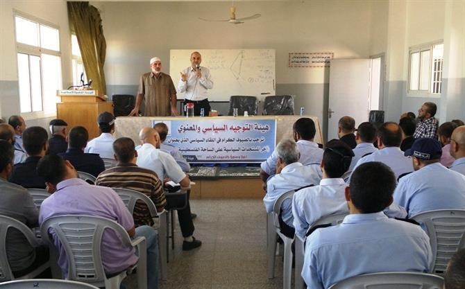 الوسطى / إعلام التوجيه السياسي: نظمت هيئة التوجيه السياسي والمعنوي في المحافظة الوسطى لقاء سياسيا للأجهزة الأمنية والشرطة في المحافظة بعنوان " آخر المستجدات السياسية على الساحة الفلسطينية والعربية ". واستضافت الهيئة في هذا اللقاء الذي عقد في قاعة كلية الدعوة في مدينة دير البلح الباحث والمحلل السياسي د. ناجي البطة الباحث والمحلل السياسي. وحضر اللقاء مدير مكتب الهيئة في المحافظة الوسطى المقدم بسام أبو الريش، وعدد من قادة الأجهزة الأمنية بالوسطى. وتحدث الدكتور البطة خلال اللقاء عن آخر المستجدات على الساحة الفلسطينية والمصرية والمحيط العربي بشكل عام بالإضافة لبعض التطورات في الموقف الدولي بخصوص الملف السوري.