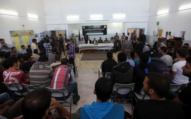 غزة/الداخلية/محمد الزرد: أفرجت المديرية العامة لمراكز الإصلاح والتأهيل بوزارة الداخلية والأمن الوطني عن 52 نزيلاً محكوماً قضوا ثلثي المدة في مراكز الإصلاح والتأهيل، وذلك بمكرمة من رئيس الوزراء ووزير الداخلية بمناسبة عيد الأضحى المبارك. وحضر حفل الإفراج عن النزلاء كل من وزير العدل د.عطا الله أبو السبح، ومدير المديرية العامة لمراكز الإصلاح والتأهيل العقيد عطية منصور، ووكيل وزارة العدل المستشار عمر البرش ولفيف من الضباط. ووجه د.عطا الله أبو السبح وزير العدل خلال كلمة له عدداً من النصائح والرسائل التوعوية للمحكومين، داعياً إياهم للقسم على عدم العودة للسلوكيات المنحرفة. وأوضح أبو السبح أنَّ الاحتلال الصهيوني يستغل من يُقدمون على ممارسة السلوكيات المنحرفة ويسقطهم ليصبحوا عملاء، وقال مخاطباً النزلاء:"إن وجودكم داخل مراكز الإصلاح والتأهيل يسعد أعداءَنا اليهود". وتمنى وزير العدل أن تكون هذه التجربة هي الأخيرة لهم، كما هنَّأ أبو السبح النزلاء المفرج عنهم بهذه المكرمة، ودعاهم إلى العودة إلى الله وعدم إفساد فرحة ذويهم وأن يكونوا فاعلين في المجتمع، معرباً عن أمله في عدم عودتهم إلى السجون. بدوره، أكد العقيد عطية منصور مدير عام المديرية العامة لمراكز الإصلاح والتأهيل أنَّ المكرمة جاءت بقرار من رئيس الوزراء إسماعيل هنية والحكومة الفلسطينية و"تحديداً من وزير العدل ووزير الداخلية بمناسبة عيد الأضحى المبارك"، مشيراً إلى أنها تهدف إلى إيصال رسالة محددة تنمُّ عن مدى حب هذه الحكومة وصدقها مع المجتمع الفلسطيني. وقال مخاطباً النزلاء:"هذه المكرمة تغافلت عن السبب الذي جاء بكم إلى مراكز الإصلاح والتأهيل لتفرج عنكم وتلتقوا بأهاليكم وذويكم لكنها لم تغفل فاحرصوا على فهم هذه الرسالة الواضحة". وتابع: "على المفرج عنهم أن يكونوا عناصر فعالة ومنتجة وذات قيمة في المجتمع الفلسطيني وأن لا يعودوا إلى ممارسة الجريمة للمحافظة علي سمعة أنفسهم وعائلاتهم". وأكد العقيد منصور أنه سيتم منح أعداد كبيرة من النزلاء إجازات بيتية، مشيراً إلى أن العدد قد يصل إلى 250 نزيلاً لكي ينعموا بالعيد بين أبنائهم وذويهم.