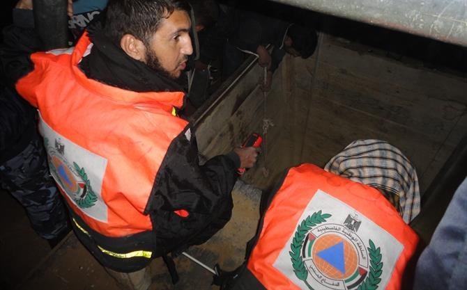 خان يونس/ إعلام الدفاع المدني: تُواصل فرق الإنقاذ لليوم السادس على التوالي البحث عن جثماني الشهيدين المفقودين محمد داوود، ومحمد القصاص، اللذان استشهدا مع الشهيد خالد أبو بكرة في اشتباك مع جنود الاحتلال ليلة الجمعة الماضية شرق خان يونس جنوب قطاع غزة في حين تم انتشال جثمان الشهيد أبو بكرة. وأوضح مدير الدفاع المدني في خان يونس المقدم رامي العايدي أنَّ فرق الإنقاذ استأنفت صباح الخميس 7-11-2013 أعمال البحث التي بدأتها منذ السبت الماضي، وذلك بعد التنسيق بين اللجنة الدولية للصليب الأحمر في غزة والاحتلال. وبيَّن العايدي أنَّ فرق الإنقاذ تمكَّنت من حفر حفرتين في مكان وجود الشهيدين، الأولى: بعمق 15 متراً بعرض 10م و40م بشكل أفقي متدرج، أما الحفرة الثانية: بعمق 22م× 19 عرضاً× 19م أفقي متدرج.