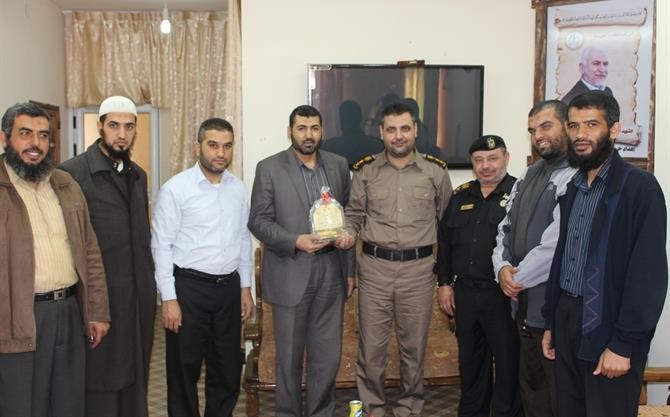 غزة – دائرة الإعلام نظمت هيئة التوجيه السياسي والمعنوي في المحافظة الوسطى حملة من الدروس والمحاضرات للأجهزة الأمنية والنزلاء عددها 7 استهدفت الدفاع المدني وشرطة التدخل وحفظ النظام (موقع دير البلح) والأمن الوطني (موقع البريج) ومباحث دير البلح وشرطة البلديات ومكافحة المخدرات والأمن الداخلي . حيث ألقى النقيب/ زاهر أبو هويشل والنقيب/باسل عواد والنقيب/ علي النشوي مجموعة من المحاضرات والدروس لأفراد وضباط الأجهزة الأمنية في المحافظة بهدف تطوير آداء موظفي وزارة الداخلية وفي إطار التواصل مع الأجهزة الأمنية. وتحدث الأخوة في مواضيع مميزة تهم كل فرد مسلم منها (الاهتمام بأمر المسلمين- وضرورة استعطاف الناس واستيعابهم -و الثبات على المواقف والمبادئ , والتمسك بها). وفي سياق آخر التقت هيئة التوجيه السياسي والمعنوي بوزارة الداخلية والأمن الوطني بمحافظة غزة، العقيد عطية منصور مدير عام المديرية العامة للتأهيل والإصلاح. وضم الوفد كلا من أ. نبيل حجاج مدير الهيئة بالمحافظة، والرائد هاني الكحلوت والنقيب عبد اللطيف القانوع والنقيب حلمي السويركي والملازم محمد شابط والملازم عبد الرحمن الرنتيسي. وشكر حجاج العقيد منصور على ارتقائه بالمديرية العامة للتأهيل والإصلاح ودوره الريادي والبارز ونقله حيث قطعت المديرية بفضل الله أولا ومن ثم بفضله نقلات نوعيه. بدوره، ثمن العقيد منصور الدور البارز والقيادي لهيئة التوجيه السياسي والمعنوي بالارتقاء بالعاملين والنزلاء . وشكر العقيد منصور التوجيه السياسي على جهودهم المباركة مؤكداً على أهمية الدور الذي تلعبه الهيئة في صياغة شخصية رجل الأمن. وفي نهاية اللقاء قدم حجاج مدير المحافظة درع الشكر والتقدير للعقيد عطية منصور على جهودهم الواضحة والبارزة.
