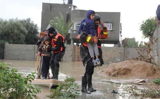 عملت طواقم الدفاع المدني طيلة ليلة أمس على إخلاء منازل المواطنين التي غمرتها مياه الأمطار بمحافظة رفح جنوب قطاع غزة.