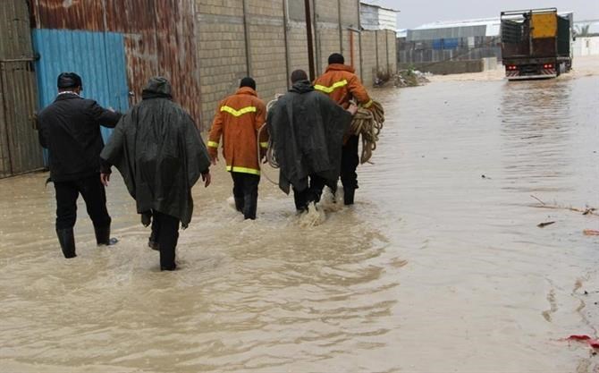 كما وأخلت الطواقم سكان 5 منازل غارقة بالمياه وشفط المياه منها وإزالة الألواح المعدنية المتطايرة عن أسطح المنازل جراء الرياح.