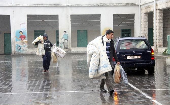وتَواصل سقوط الأمطار على غزة أربعة أيام متتالية وقامت طواقم الدفاع االمدني وبلدية دير اليلح اليوم بفتح مركز جديد للإيواء في مدرسة عبد الله بن رواحة .