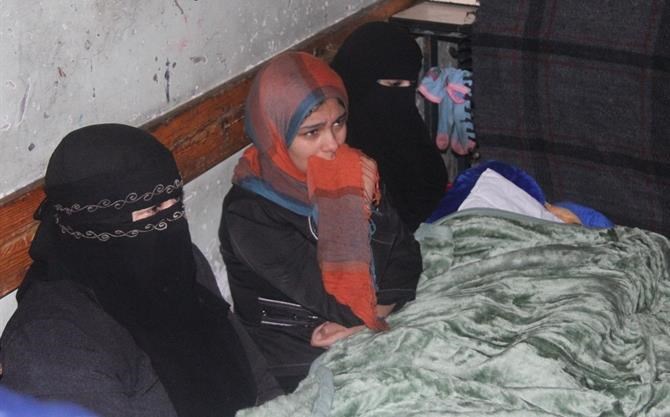وصلت أسرة الكتوت أطفالاً ونساءً غارقي الملابس لمدرسة قريبة من منزلهم في ساعة متأخرة من ليلة وصفوها بـ"الصعبة" تاركين خلفهم كل ممتلكاتهم ومقتنياتهم .