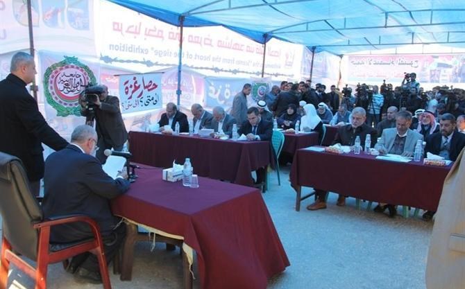 وتخلل الاعتصام الذى نفذه نواب التشريعي عقد جلسة للنواب في خيمة الاعتصام التي أقامتها اللجنة الوطنية العليا لكسر الحصار أمام المعبر للمطالبة بفتحه وفك الحصار.