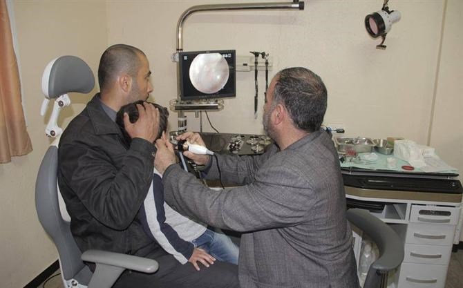 وفي ذات السياق, قال الملازم أول نبيل أبو عمشة أخصائي قسم السمعيات التابعة لعيادة الأنف والأذن والحنجرة أنه تم تزويد العيادة بجهازين الأول جهاز Audiometer والذي يقوم بفحص الأذن الداخلية والعصب والقوقعة.