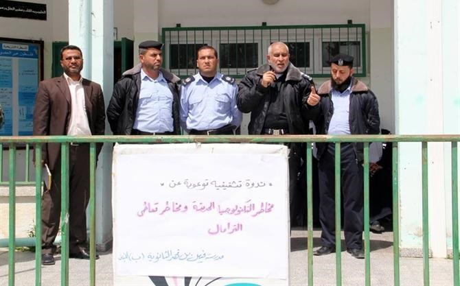 نظمت دائرة العلاقات العامة في مركز شرطة جباليا النزلة لقاء توعوي وإرشادي لطلاب مدرسة فيصل بن فهد "ب" الثانوية للبنات.
