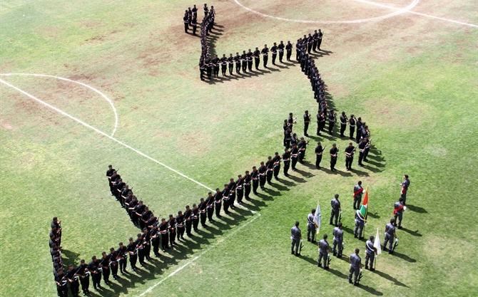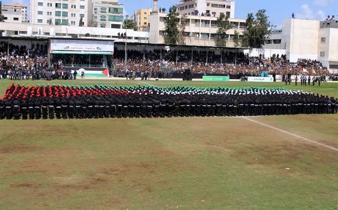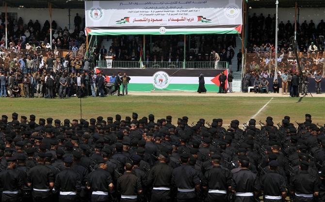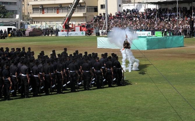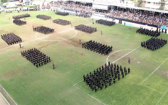مع إعطاء إشارة بدء فعاليات التخريج تقدمت قوات العرض راجلة داخل "المستطيل الأخضر"