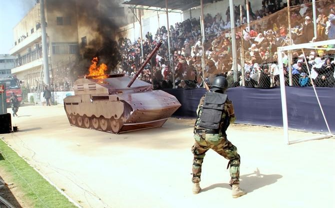 وطافت جميع أرجائه بخطوات متناسقة وحركات منتظمة دللت على قوة الأداء وعمق التدريب والتطوير الذي تلقاه الخريجون طيلة عدة أشهر من التعب وعرق الميدان. طاف خريجو فوج "درب الشهداء" ميدان العرض ورسموا بأقدامهم المنتظمة وأياديهم المتناسقة في حركتها لوحة فنية جميلة.