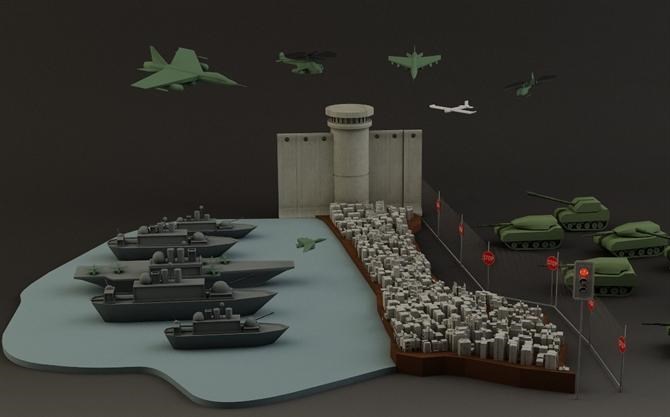 Gaza strip .. The small area of the occupied historical Palestine, which does not exceed an area of 360 square kilometers (1.33% ) of the land of Palestine , surrounded by three crossings are the lifeblood of 800 million thousand citizens living on its territory .