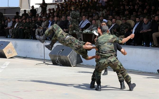 وتخلل حفل التخريج عروض عسكرية متنوعة اشتملت على استعراض فنون القتال لقوة الصاعقة وعرض قوة "المغاوير" الذي حاكى اقتحام نقطة مراقبة للاحتلال وتدميرها بالكامل، كما شكل خريجو الدورة بأجسادهم عبارة "الحرية للأسرى".