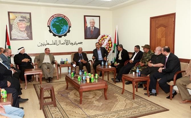 وكان في إستقبال وزير الداخلية والوفد المرافق له أ. مؤمون أبو شهلة ورئيس مجلس إدارة جمعية رجال الأعمال بغزة أ. علي الحايك بالإضافة إلى عدد من رجال الأعمال الفلسطيني.