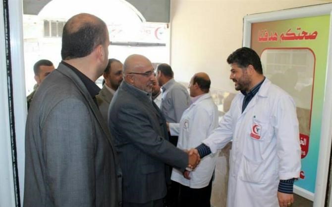 وضم الوفد كل من قائد قوات الأمن الوطني اللواء أبو عبيدة الجراح ونائبه العقيد طارق أبو هاشم ومدير الشئون الإدارية والمالية العقيد إياد عقل، حيث كان في استقبالهم مدير عيادة الشاطئ العسكرية الرائد طبيب حامد الشرافي ومدراء الإدارات ورؤساء الأقسام في العيادة.