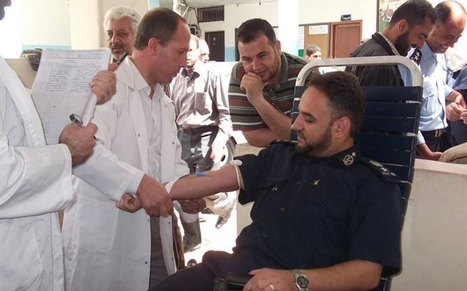 نظم مركز شرطة الشيخ رضوان بالتعاون مع وزارة الصحة - بنك الدم المركزي في مستشفى الشفاء - حملة للتبرع بالدم لكوادره .
