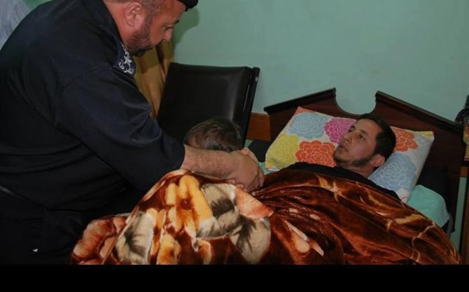 زار مدير عام الشرطة العميد تيسير البطش أحد مصابي قوات التدخل وحفظ النظام رقيب أول صبري النجار والذين أصيب أثناء مهمة عمل .