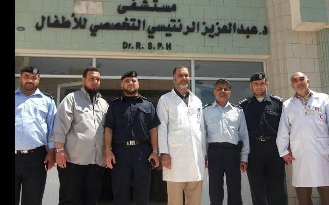 زار وفد من شرطة محافظة غزة مستشفى الدكتور عبد العزيز الرنتيسي للأطفال في مدينة غزة وذلك بمناسبة اليوم العالمي لمكافحة التلاسيميا , حيث كان في استقبال الوفد مدير المستشفى د. نبيل البرقوني.