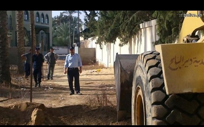 قامت شرطة بلديات خانيونس بالتعاون مع موظفي بلدية عبسان الجديدة بردم عدد من آبار الصرف الصحي المخالفة.