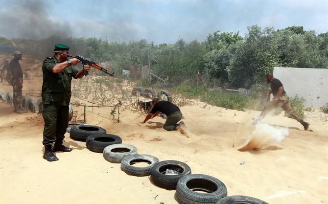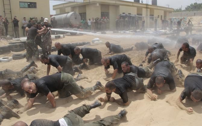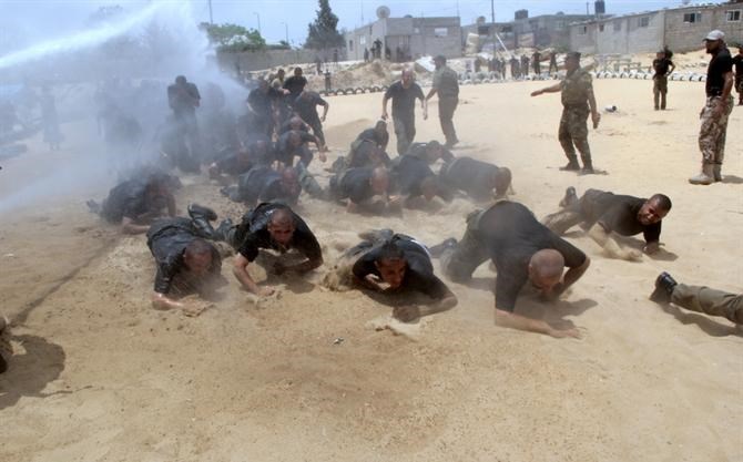 أجرت قوات الأمن الوطني التابعة لوزارة الداخلية، اليوم الأربعاء 28/5/2014، مناورة عسكرية تُحاكي معركة حقيقة خلال تدريبات دروة الضباط الثامنة في مركز تدريب الأمن الوطني شرق مدينة غزة.